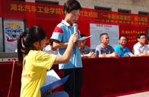 7月10日上午,湖北汽車工業(yè)學(xué)院“V益·青竹”暑期愛(ài)心支教團(tuán)的大學(xué)生們?cè)谑Y家堰鎮(zhèn)中原小學(xué)舉行愛(ài)心捐贈(zèng)活動(dòng)。湖北汽車工業(yè)學(xué)院副院長(zhǎng)閔祖?zhèn)魍尽⒖h教育局副局長(zhǎng)周躍忠同志以及相關(guān)領(lǐng)導(dǎo)都趕來(lái)支持。