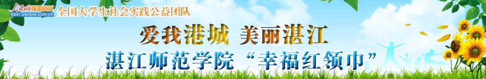2013年,人民網(wǎng)招募50個大學生團隊組成“全國大學生社會實踐公益團隊”,走進基層開展多種形式的支教助學、生態(tài)保護主題公益服務活動。隨著暑期到來,各團隊已陸續(xù)開始活動,并將全過程通過大學生論壇進行網(wǎng)絡直播。湛江師范學院“幸福紅領巾”服務隊是50支重點團隊之一,7月8日至18日,他們在烏石鎮(zhèn)的潭板小學、潭朗小學和三教小學,通過舉辦“綠動,循環(huán)再用”環(huán)保創(chuàng)意設計大賽、“我的海洋世界”繪畫比賽、向村民發(fā)放“創(chuàng)衛(wèi)”宣傳知識手冊和環(huán)保知識扇子,“攜手三教獻青春 共筑幸福中國夢”文藝匯演等實踐內(nèi)容,開展生態(tài)環(huán)保教育。