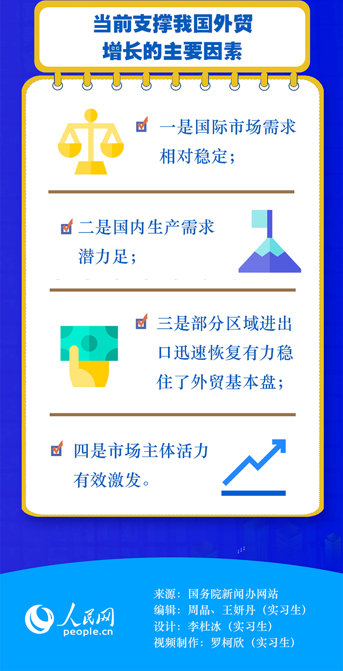 商務部原副部長魏建國在接受人民網(wǎng)“強觀察”欄目記者采訪時表示,上半年的外貿(mào)增長主要有三方面原因:首先,高效統(tǒng)籌疫情防控和經(jīng)濟社會發(fā)展取得實效。其次,多措并舉穩(wěn)市場主體。隨著國家穩(wěn)經(jīng)濟一攬子政策措施的落地見效,外貿(mào)保穩(wěn)提質(zhì)等各項工作加快推進,我國外貿(mào)市場主體活力有效激發(fā)。此外,以國內(nèi)大循環(huán)為主體、國內(nèi)國際雙循環(huán)相互促進的新發(fā)展格局的作用正在發(fā)揮出來。