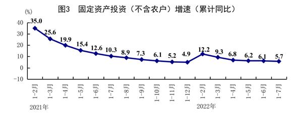 看投資。1-7月份,全國固定資產投資(不含農戶)319812億元,同比增長5.7%,比1-6月份回落0.4個百分點。