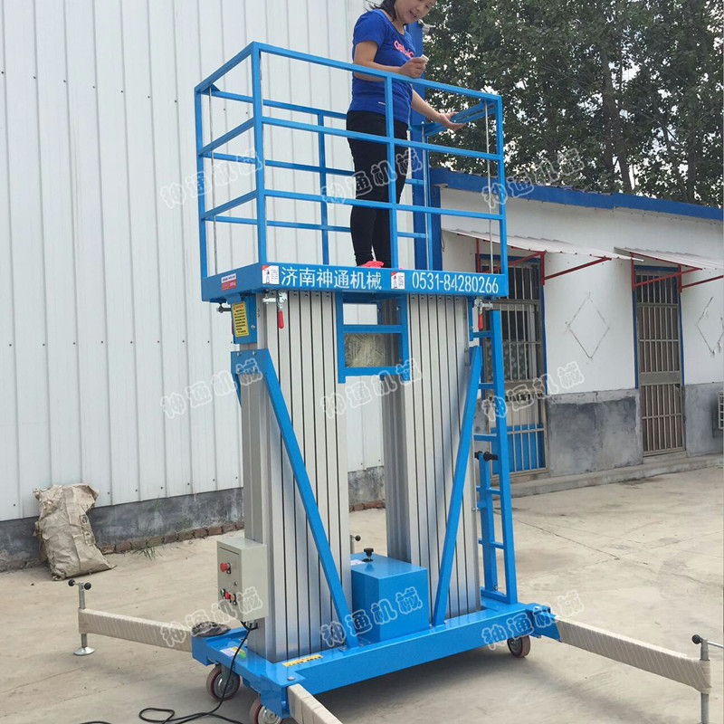 產(chǎn)品介紹:鋁合金電動(dòng)升降機(jī),采用高強(qiáng)度優(yōu)質(zhì)鋁合金材料,具有造型美觀、體積小、重量輕、運(yùn)轉(zhuǎn)靈活,推行方便。升降平穩(wěn)、安全可靠等優(yōu)點(diǎn)。SJYL三柱鋁合金液壓升降平臺(tái)能穿越一般門廳,可隨意進(jìn)出電梯,能在極小的空間內(nèi)發(fā)揮最高的舉升能力。使單人高空作業(yè)變得輕而易舉。且耗電少、無污染、工作時(shí)不傷地面,可用于貼墻作業(yè)及探出作業(yè)。鋁合金液壓升降平臺(tái)分為:單柱、雙柱、三柱和四柱等。